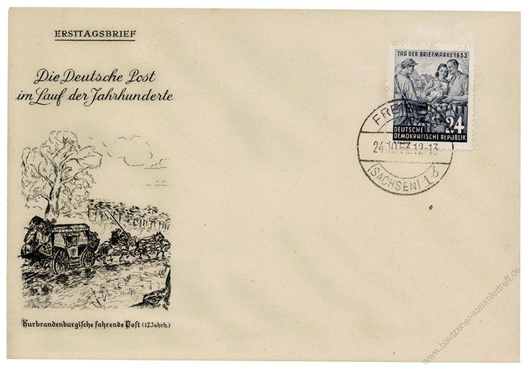 Erhaltung: Ersttagsbrief mit Ortsstempel Freiberg vom 24.10.1953